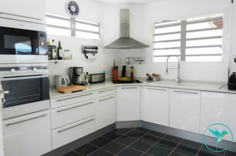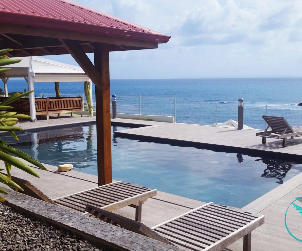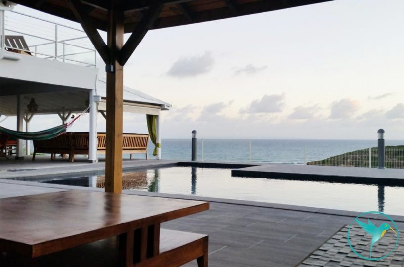 Idéalement située sur les hauteurs de l’Anse à la Barque, sur la commune de St François en Grande Terre, la villa jouit d’une vue mer à 180 degrés avec comme fond les îles des Saintes, Marie Galante, La Dominique et Basse Terre.